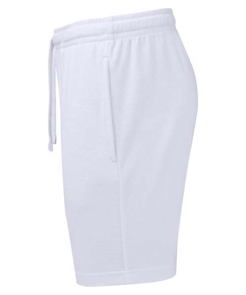 Soft hand feel. Towelling fabric. Patch pocket at rear. Forward-facing swing pockets. Elasticated waistband with drawcord. Twin-needle stitching on hem. Contains 20% certified recycled polyester.